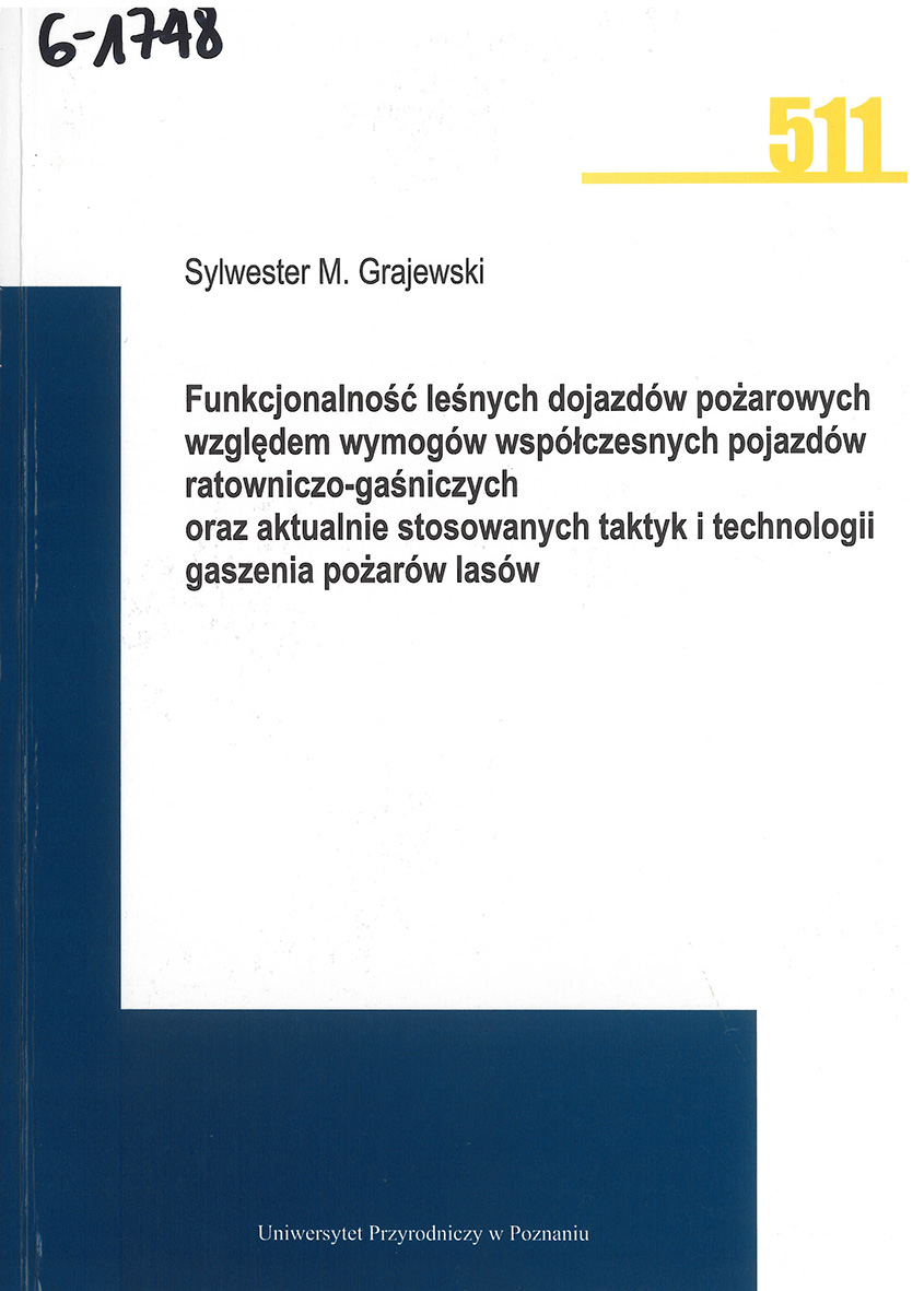Grajewski S. M., Funkcjonalność leśnych dojazdów pożarowych względem wymogów współczesnych pojazdów ratowniczo-gaśniczych oraz aktualnie stosowanych taktyk i technologii gaszenia pożarów lasów, Poznań 2019.