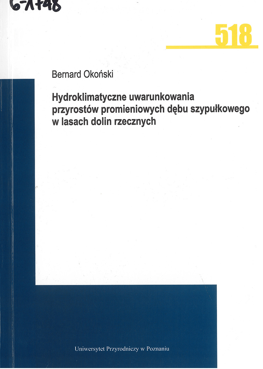 Okoński B., Hydroklimatyczne uwarunkowania przyrostów promieniowych dębu szypułkowego w lasach dolin rzecznych, Poznań 2019.