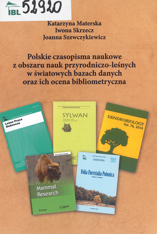 Materska K., Skrzecz I., Szewczykiewicz J., Polskie czasopisma naukowe z obszaru nauk przyrodniczo-leśnych w światowych bazach danych oraz ich ocena bibliometryczna, Sękocin Stary 2019.