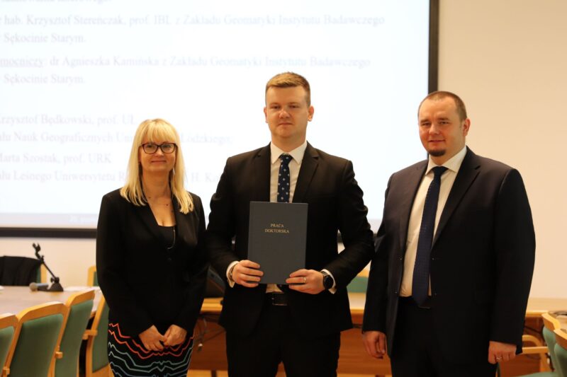 Promotor dr. hab. Krzysztof Stereńczak, prof. IBL, promotor pomocniczy dr Agnieszka Kamińska, a także recenzenci rozprawy doktorskiej dr Macieja Lisiewicza: dr hab. Marta Szostak, prof. URK z Wydziału Leśnego Uniwersytetu Rolniczego im. H. Kołłątaja w Krakowie oraz dr hab. Krzysztof Będkowski, prof. UŁ z Wydziału Nauk Geograficznych Uniwersytetu Łódzkiego