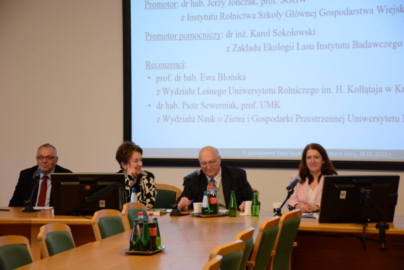 Dr inż. Krzysztof Sztabkowski pod kierunkiem Promotora dr. hab. Jerzego Jonczaka, prof. SGGW z Instytutu Rolnictwa Szkoły Głównej Gospodarstwa Wiejskiego w Warszawie oraz Promotora pomocniczego dr. inż. Karola Sokołowskiego z Zakładu Ekologii Lasu IBL, przygotował rozprawę pt. „Wpływ czynników lito-morfogenetycznych na rozwój i właściwości leśnych gleb rdzawych w zasięgu zlodowacenia Wisły”.