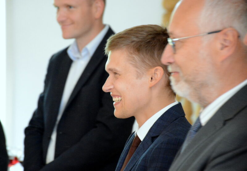 Radość na twarzy Krzysztofa po skutecznej obronie i nadaniu stopnia doktora nauk rolniczych w dyscyplinie nauki leśne