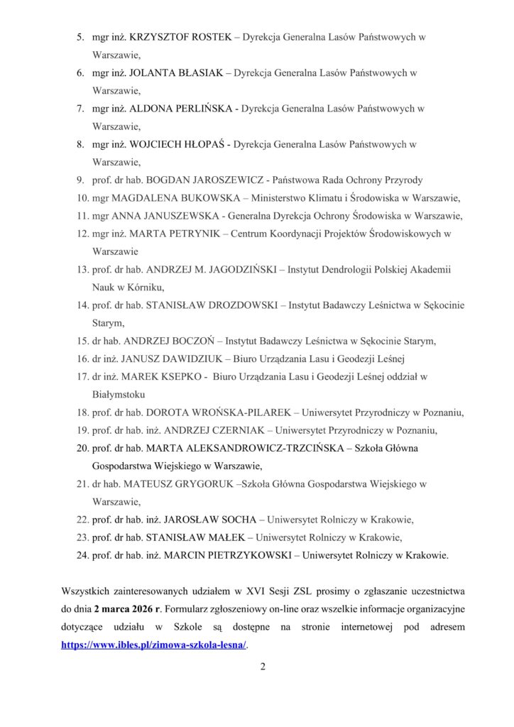 Komunikat nr 1 – XVI Sesja Zimowej Szkoły Leśnej przy Instytucie Badawczym Leśnictwa