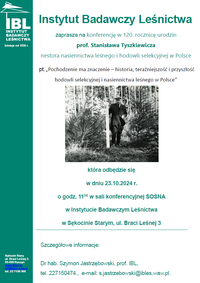Konferencja naukowa pt. „Pochodzenie ma znaczenie – historia, teraźniejszość i przyszłość hodowli selekcyjnej i nasiennictwa leśnego w Polsce – Konferencja w 120. rocznicę urodzin prof. Stanisława Tyszkiewicza.