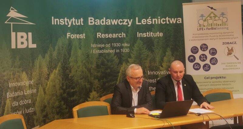 Dyrektor Instytutu Badawczego Leśnictwa prof. dr hab. Jacek Hilszczański i Kierownik Projektu LIFE+ ForBioSensing