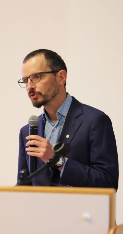 Dr inż. Wojciech Gil, kierownik Zakładu Hodowli Lasu i Genetyki Drzew Leśnych, prezentuje sylwetkę prof. Tyszkiewicza