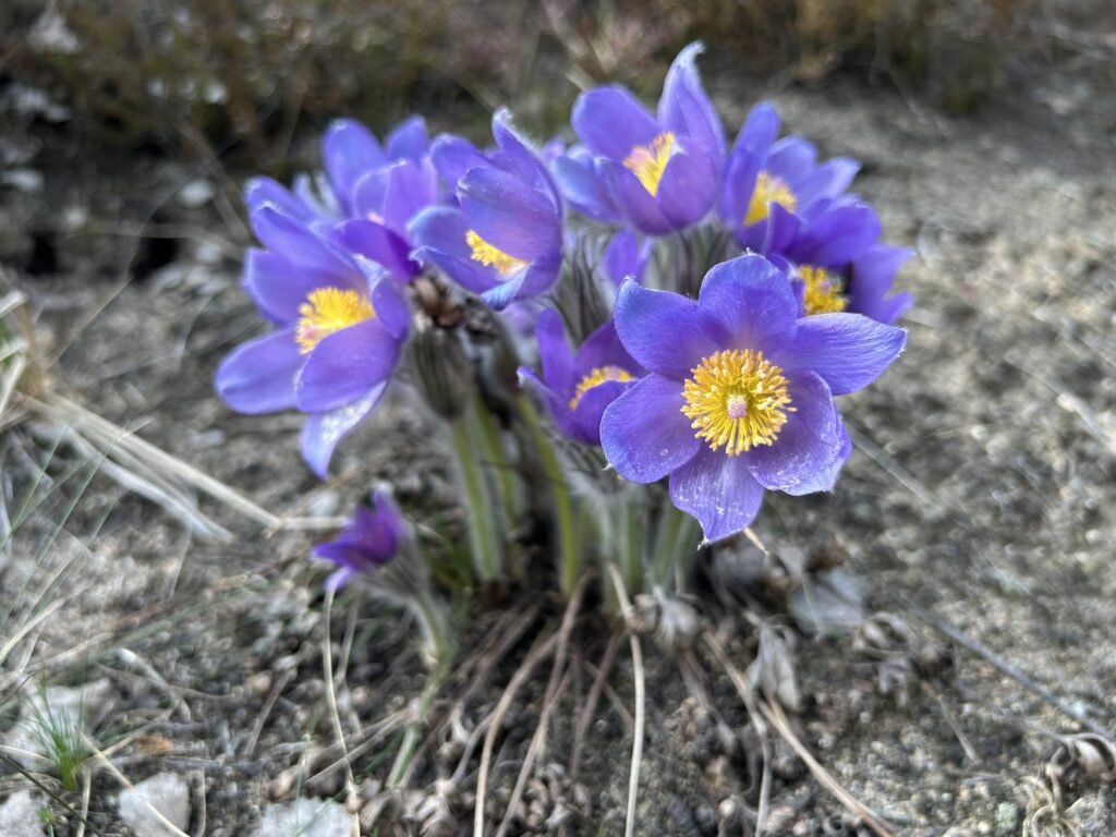 Fot. 2. Sasanka zwyczajna, występująca na terenie objętym procesem wypalania (Okaz ten został zabezpieczony przed dzianiem ognia).