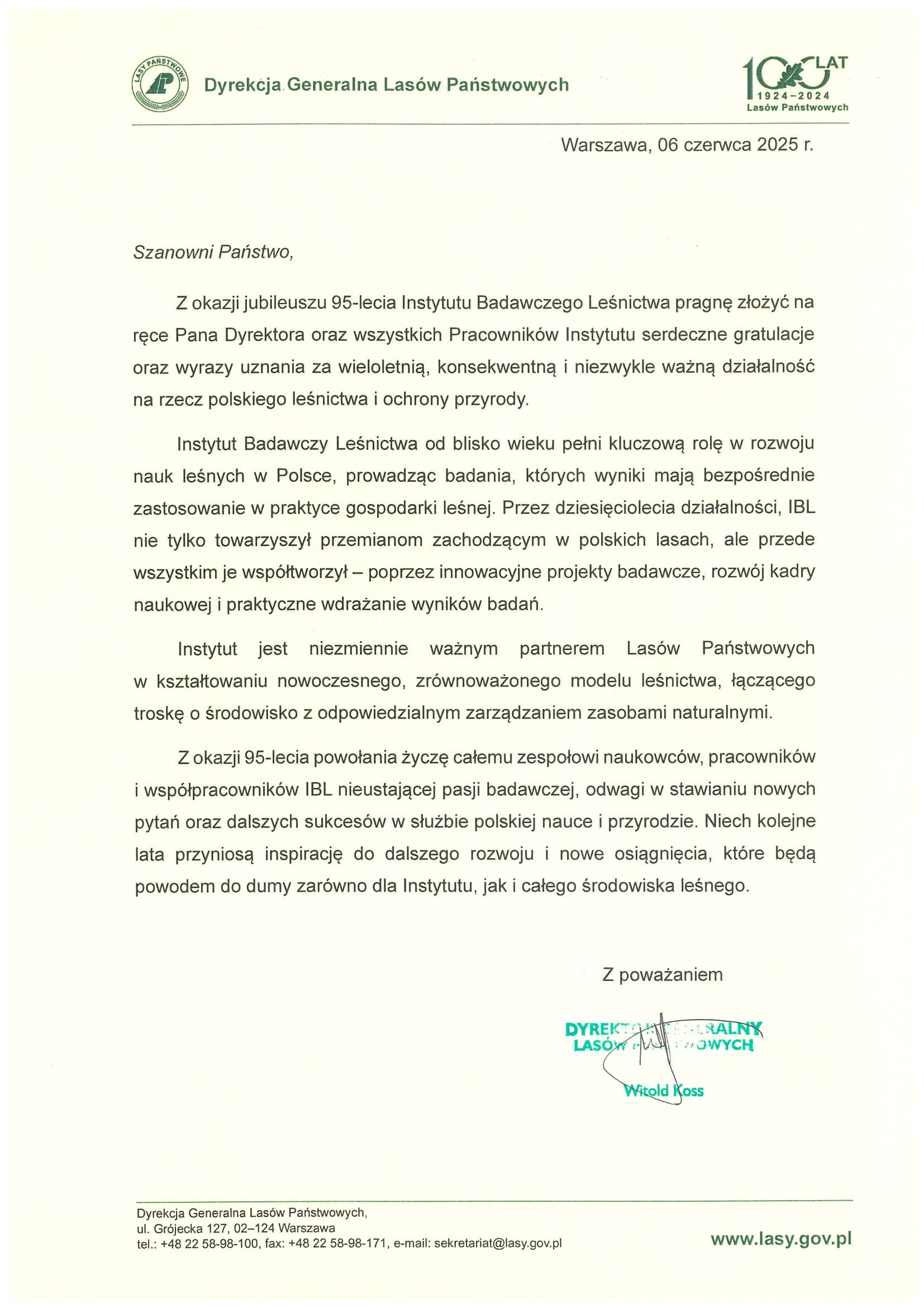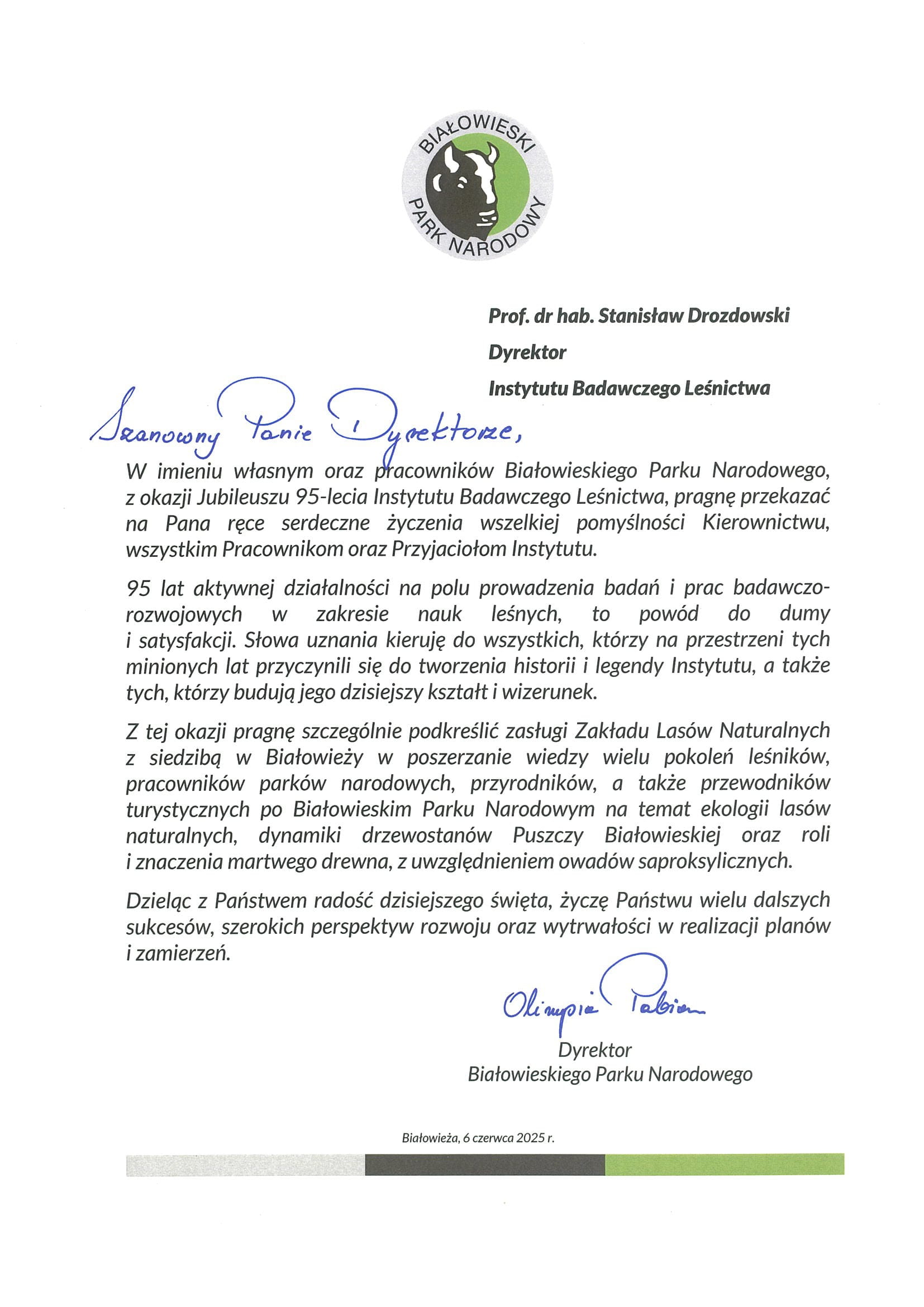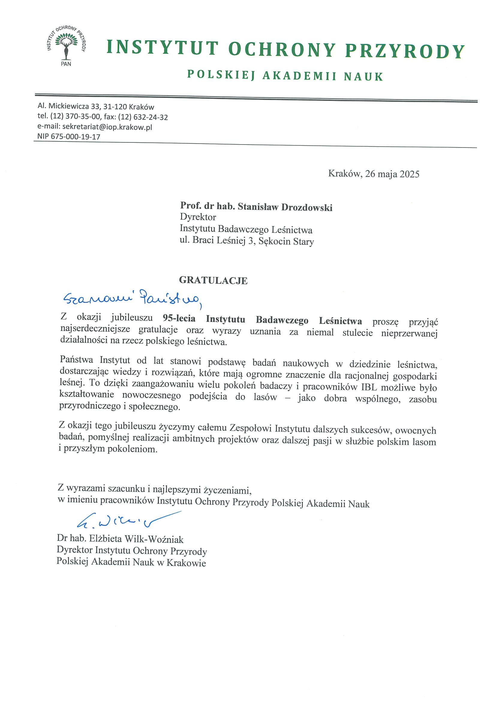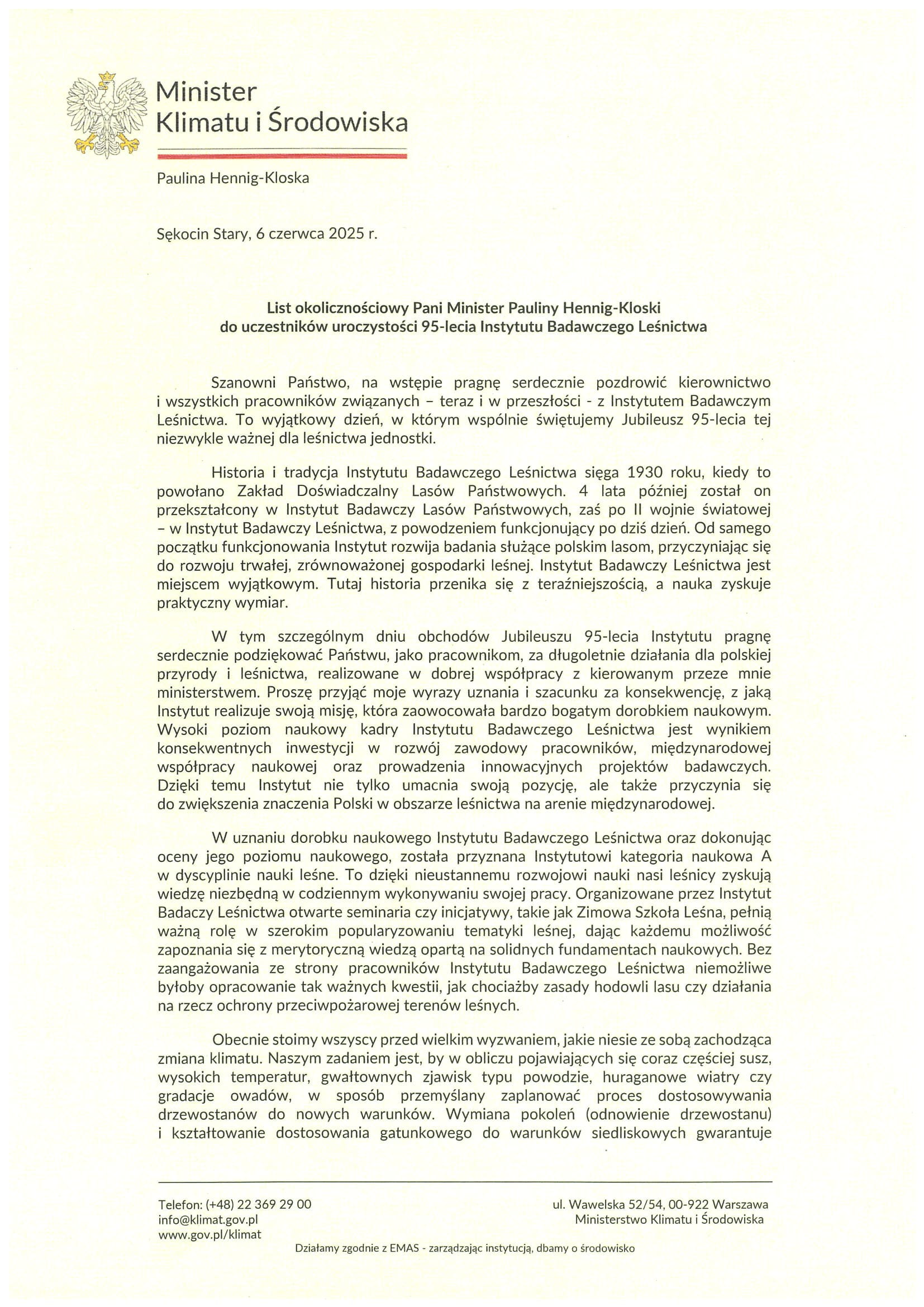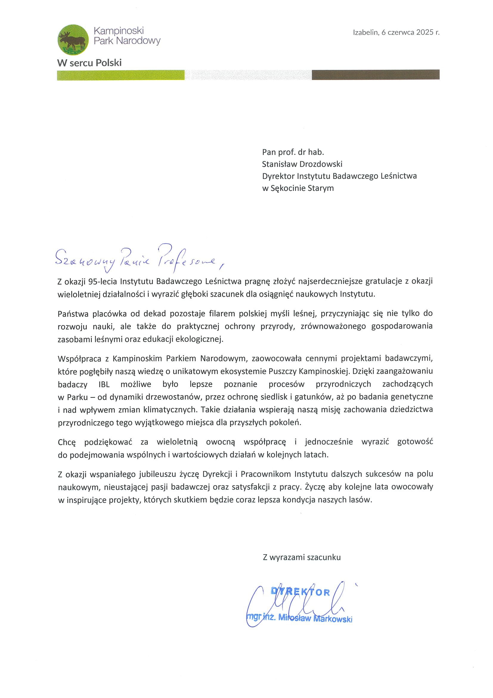 Obchody Jubileuszu 95-lecia były nie tylko okazją do wspomnień i uhonorowania dorobku Instytutu, ale także wyrazem jedności całego środowiska leśnego wokół wspólnej troski o polską przyrodę. Dziękujemy wszystkim Gościom, Partnerom i Pracownikom za obecność i współtworzenie tego wyjątkowego dnia!