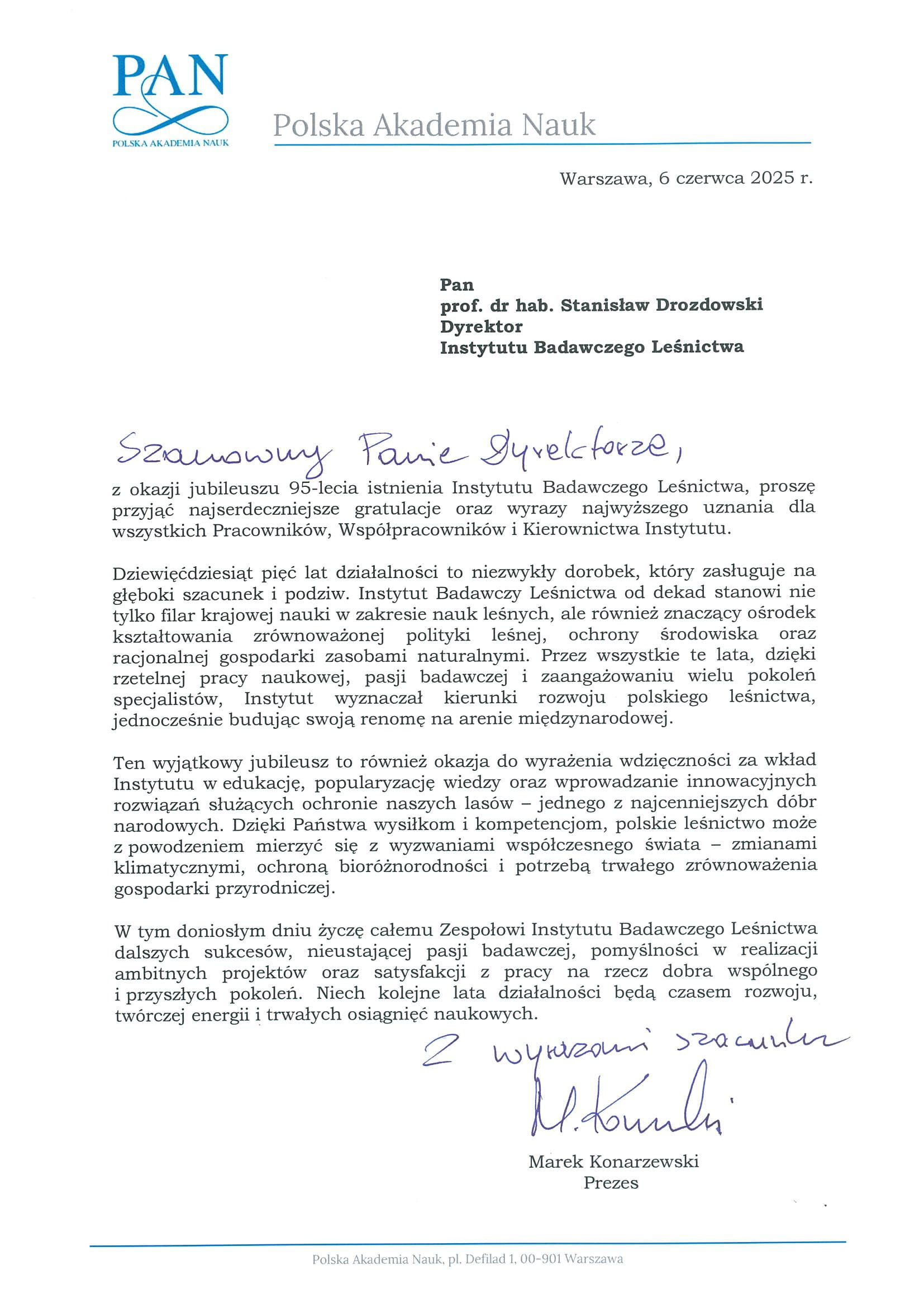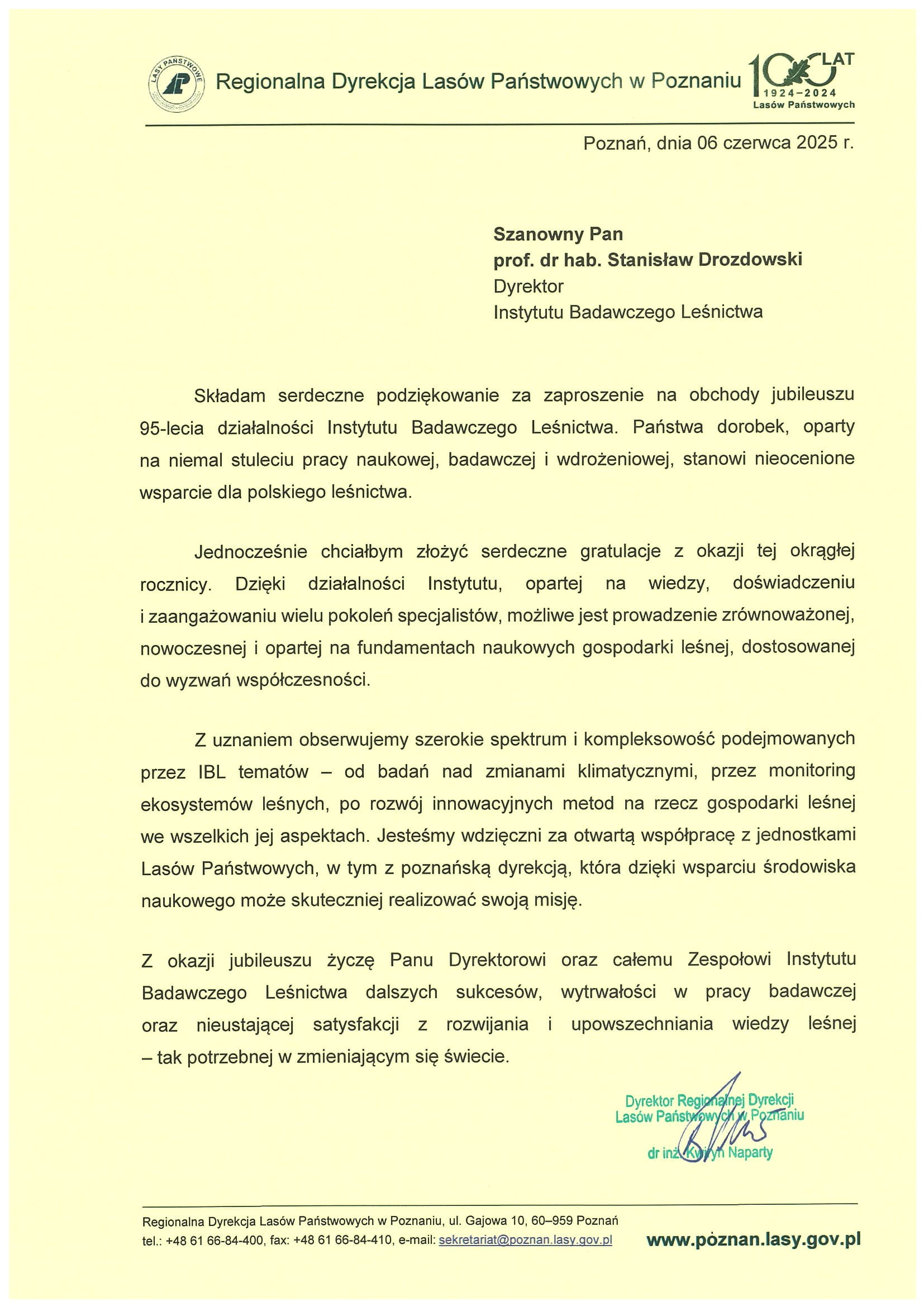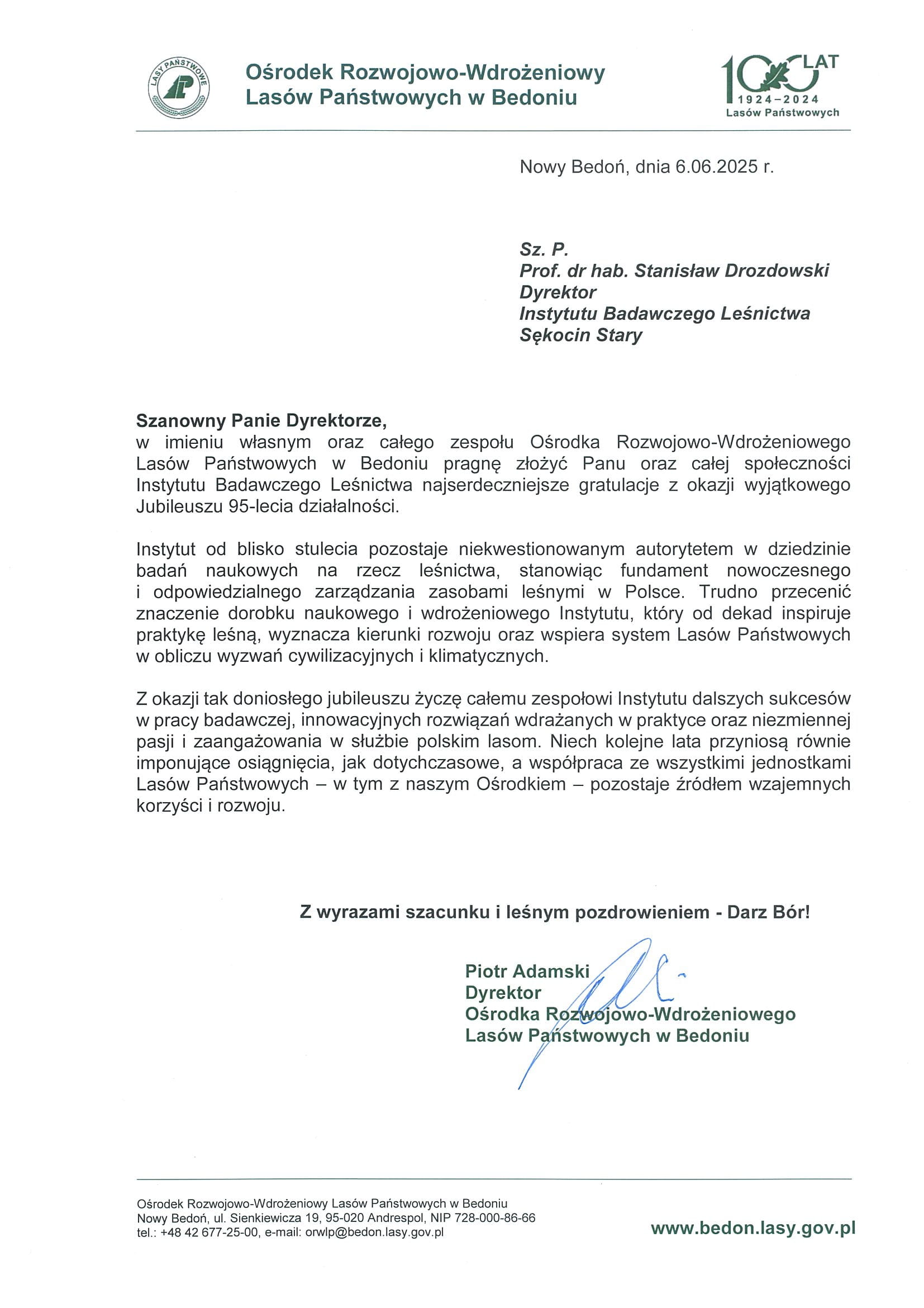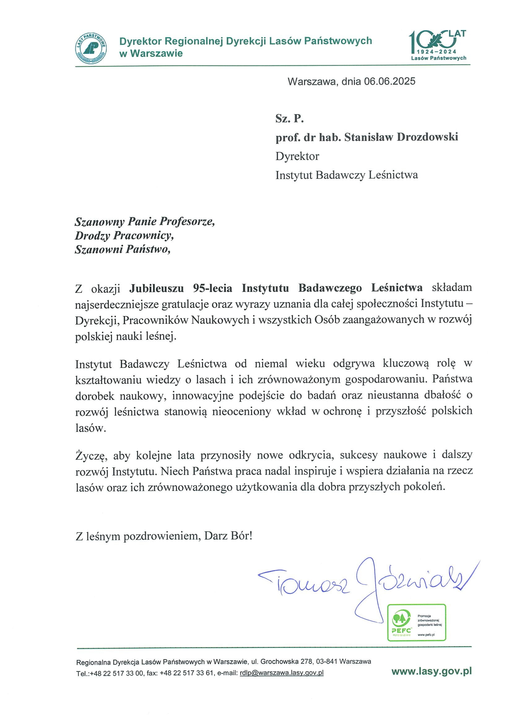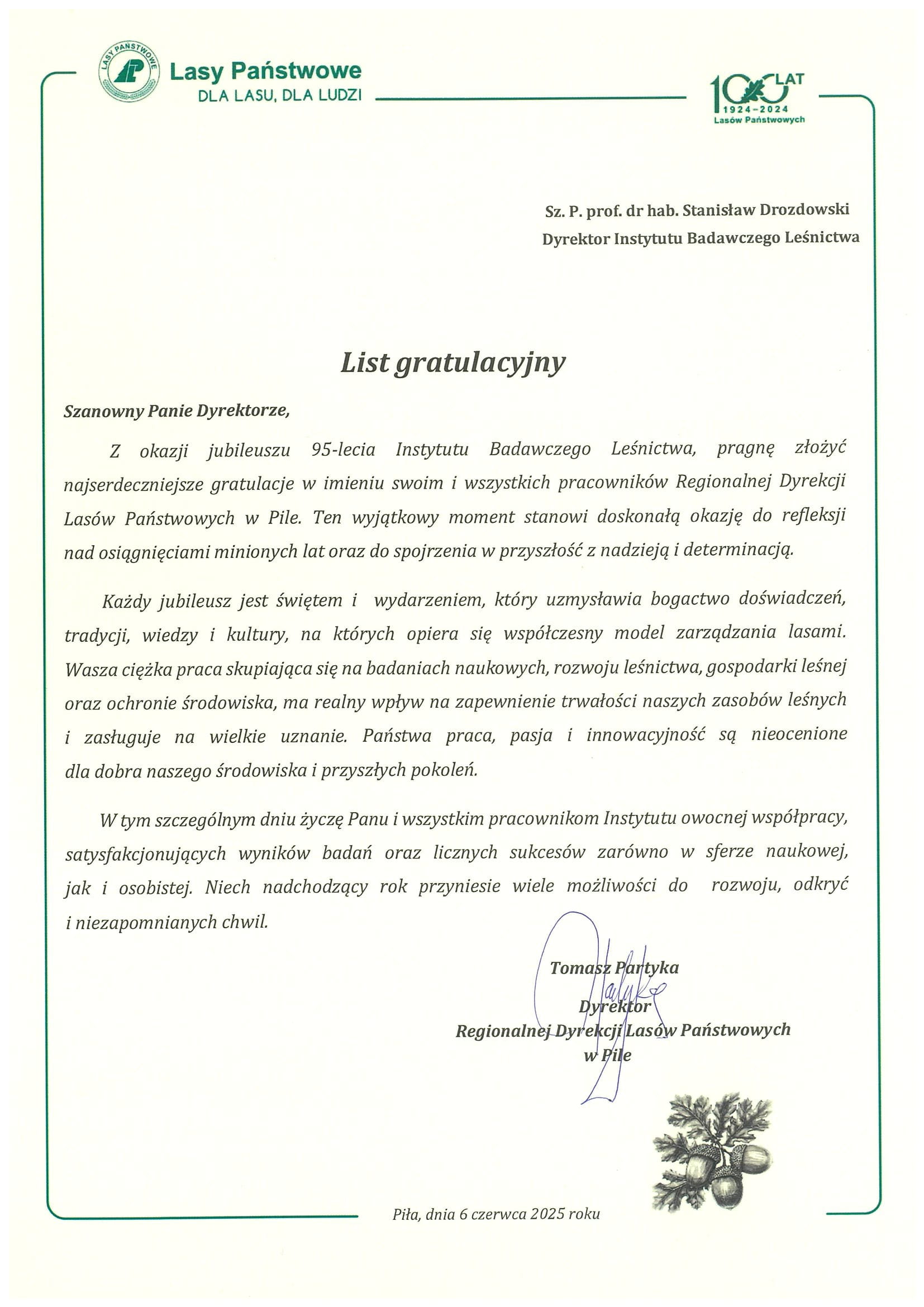 Obchody Jubileuszu 95-lecia były nie tylko okazją do wspomnień i uhonorowania dorobku Instytutu, ale także wyrazem jedności całego środowiska leśnego wokół wspólnej troski o polską przyrodę. Dziękujemy wszystkim Gościom, Partnerom i Pracownikom za obecność i współtworzenie tego wyjątkowego dnia!