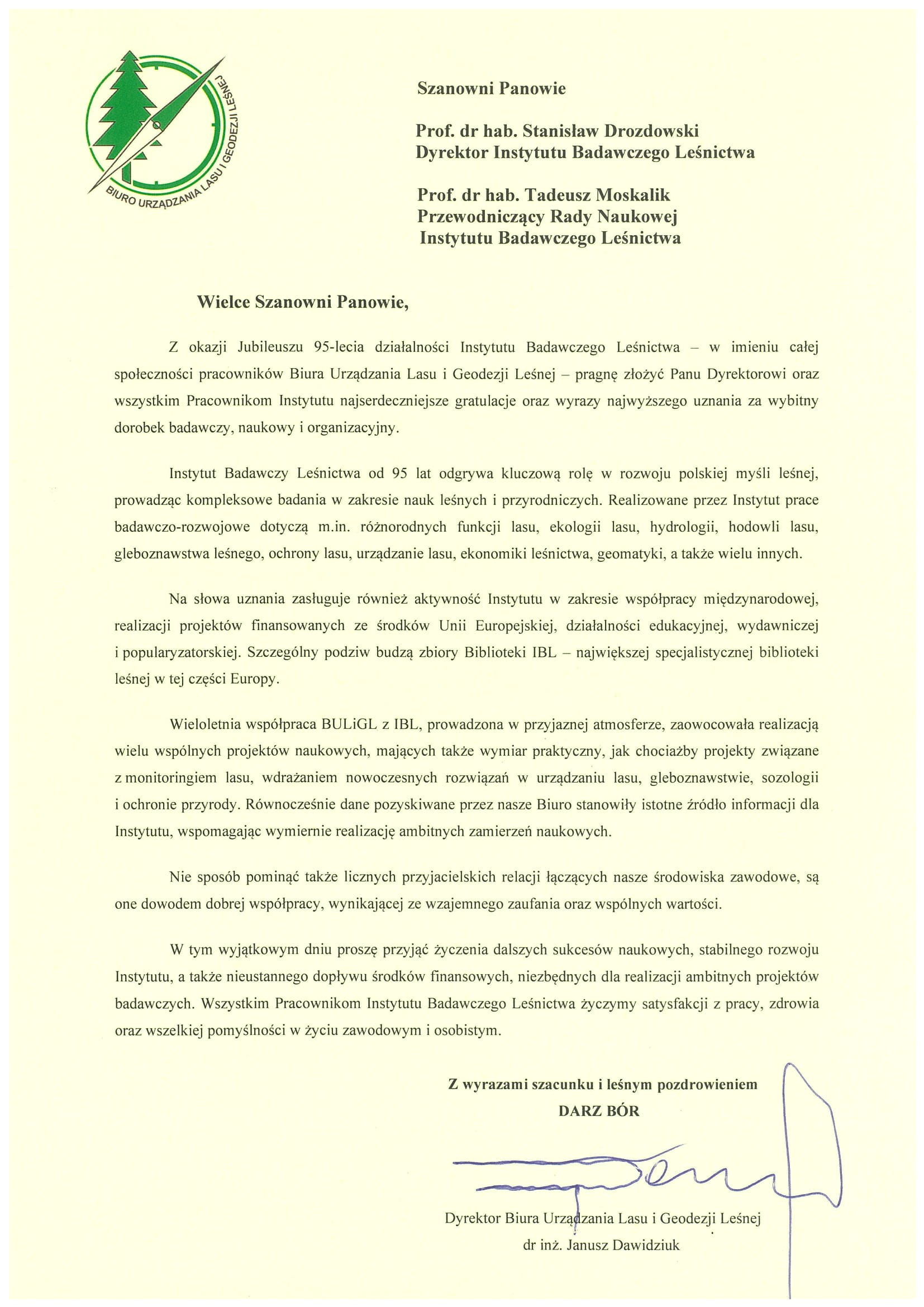 Obchody Jubileuszu 95-lecia Instytutu Badawczego Leśnictwa