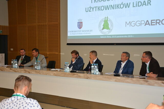Ważnym akcentem pierwszego dnia był panel dyskusyjny zorganizowany przez firmę MGGP Aero. Panel poprowadził Jerzy Królikowski, redaktor prowadzący portal GEOFORUM. Zaproszeni zostali przedstawiciele trzech wiodących firm w zakresie pozyskania danych z lotniczego skanowania laserowego, MGGP (Jacek Siedlik), OPEGIEKA (Adam Augustynowicz) oraz GISPRO (Grzegorz Szalast), przedstawiciel GUGiK jako głównego zamawiającego dane w kraju (Adam Andrzejewski), natomiast z perspektywy użytkownika oraz naukowca, zaproszeni zostali dr hab. Krzysztof Stereńczak, prof. IBL oraz prof. Zdzisław Kurczyński z Politechniki Warszawskiej. W trakcie panelu dyskutowane były zagadnienia związane z przyszłością lotniczego skanowania laserowego w Polsce. Można było usłyszeć głos firm jak i użytkowników danych, oraz posłuchać o najważniejszych wyzwaniach branży.