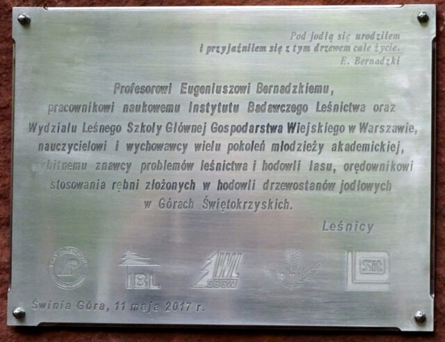 Tablica pamiątkowa ku pamięci prof. dr. hab. Eugeniusza Bernadzkiego na terenie Nadleśnictwa Suchedniów