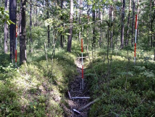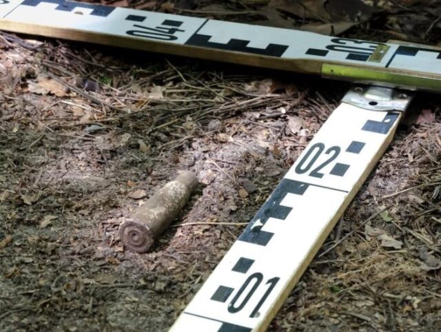 Fotografia poglądowa z weryfikacyjnych prac terenowych – pozostałości reliktów militarnych. Nadleśnictwo Drewnica. Fot. I. Badura