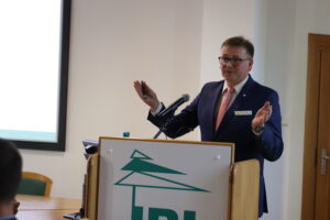 Pierwszą prezentację dotyczącą wyników monitoringu fitosocjologicznego wygłosił dr hab. Janusz Czerepko z Zakładu Ekologii Lasu IBL. Prelegent przedstawił założenia metodyczne, wyniki prac fitosocjologicznych przeprowadzonych w 2023 roku a także porównania zmian w bogactwie gatunkowym roślin między pierwszą inwentaryzacją z lat 2016-2018 a stanem obecnym.