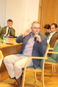 Po zakończeniu części referatowej rozpoczęła się sesja pytań i dyskusji. Spośród uczestników obecnych na sali pojawiły się szczegółowe pytania o chrząszcze saproksyliczne, aktualne zasoby martwego drewna czy metodykę monitoringu jarząbka.