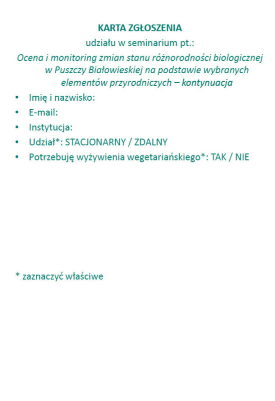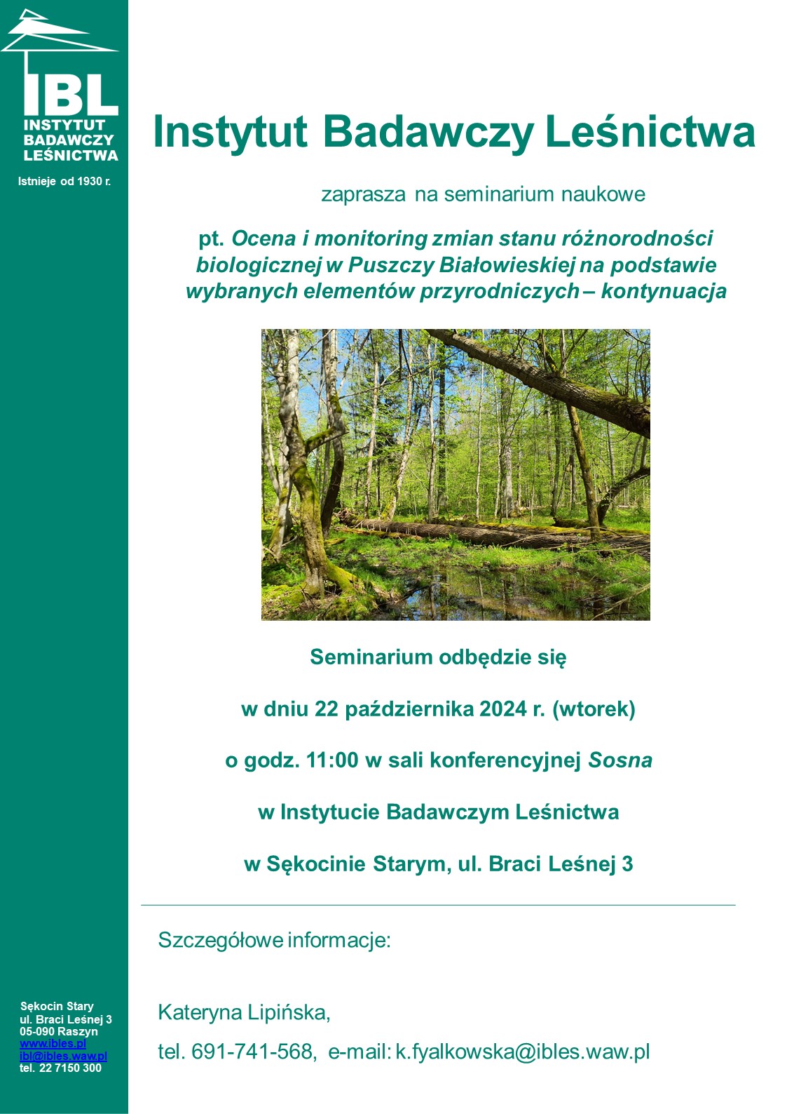 Seminarium naukowe pt. „Ocena i monitoring zmian stanu różnorodności biologicznej w Puszczy Białowieskiej na podstawie wybranych elementów przyrodniczych – kontynuacja”.
