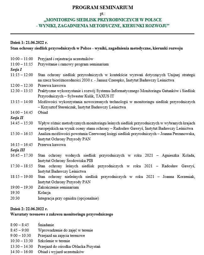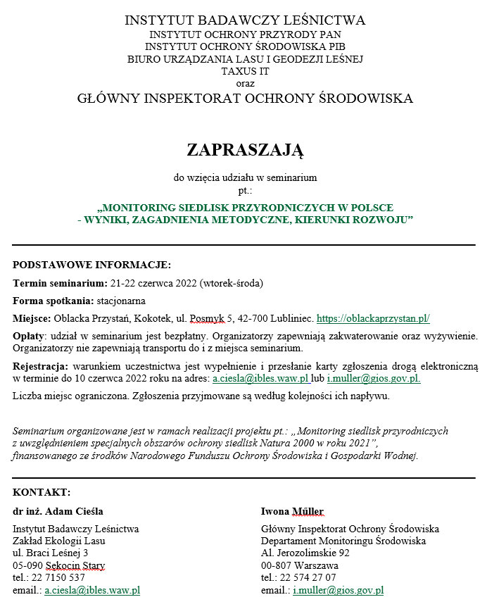 Seminarium pt. „Monitoring siedlisk przyrodniczych w Polsce – wyniki, zagadnienia metodyczne, kierunki rozwoju”