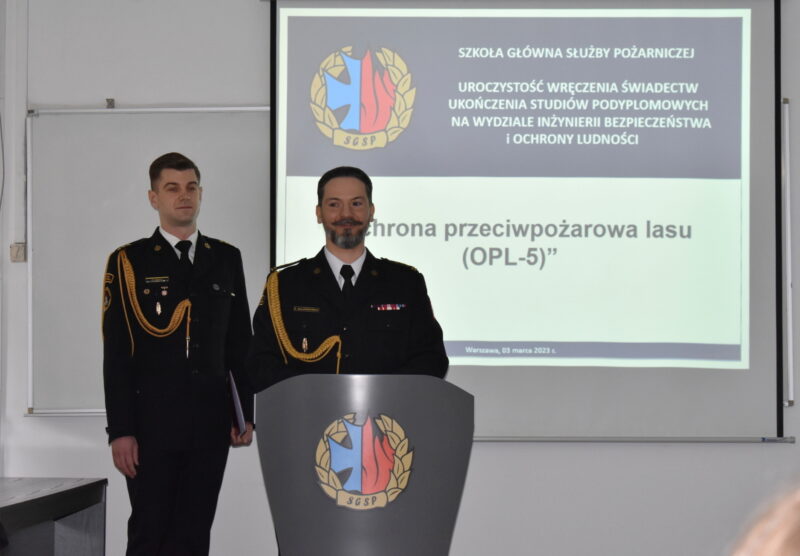 3 marca 2023 r. w Szkole Głównej Służby Pożarniczej odbyło się uroczyste wręczenie 24 absolwentom dyplomów ukończenia studiów podyplomowych „Ochrona Przeciwpożarowa lasu” na Wydziale Bezpieczeństwa i Ochrony Ludności.
