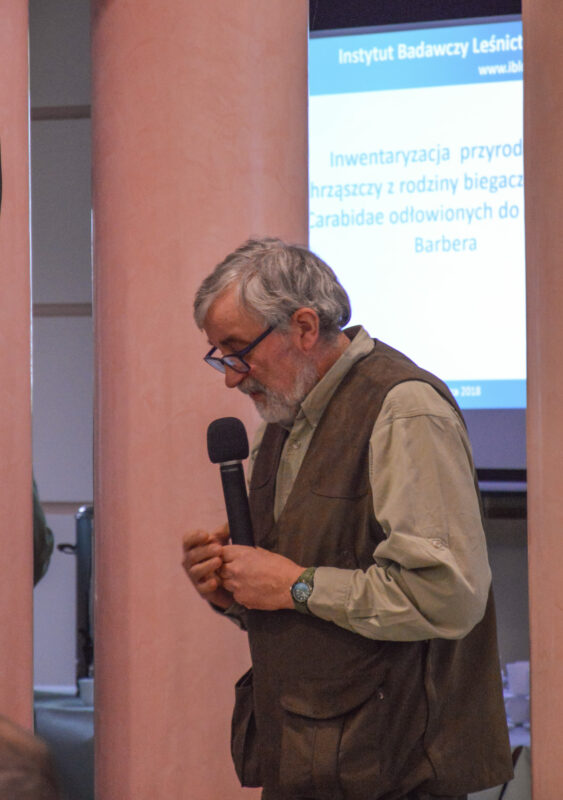 Następnie głos zabrał dr hab. Wojciech Grodzki prof. IBL – kierownik Zakładu Lasów Górskich IBL, przybliżając cel oraz zakres inwentaryzacji przyrodniczej prowadzonej w latach 2016 – 2017 przez wchodzące w skład konsorcjum instytucje: IBL, Instytut Ochrony Przyrody PAN i F.H.U BioData, z dużą pomocą pracowników Lasów Państwowych. W drugiej części wystąpienia omówione zostały wyniki dotyczące występowania ważek, motyli oraz pachnicy (Osmoderma sp.).
