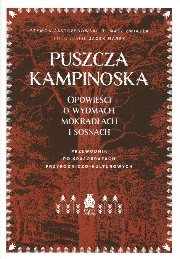 Jastrzębowski Sz., Związek T., Marek J. (fotografie). 2023. Puszcza Kampinoska. Opowieści o wydmach, mokradłach i sosnach. Wydawnictwo Paśny Buriat, Kielce.„Wędrowanie po Puszczy Kampinoskiej to szczególna przyjemność. W tym wielkim jak na europejskie warunki kompleksie leśno-wydmowo-bagiennym można odpocząć, pobyć z własnymi myślami, wychodzić wiele rzeczy trapiących ludzką duszę. Czy jest jednak możliwe, by chodząc po tym rozległym terenie zajrzeć w przeszłość? Zobaczyć jak Puszcza Kampinoska wyglądała na początki XIX stulecia? A może jeszcze wcześnie? […] A otóż można! Właśnie dzięki tej książce!” |