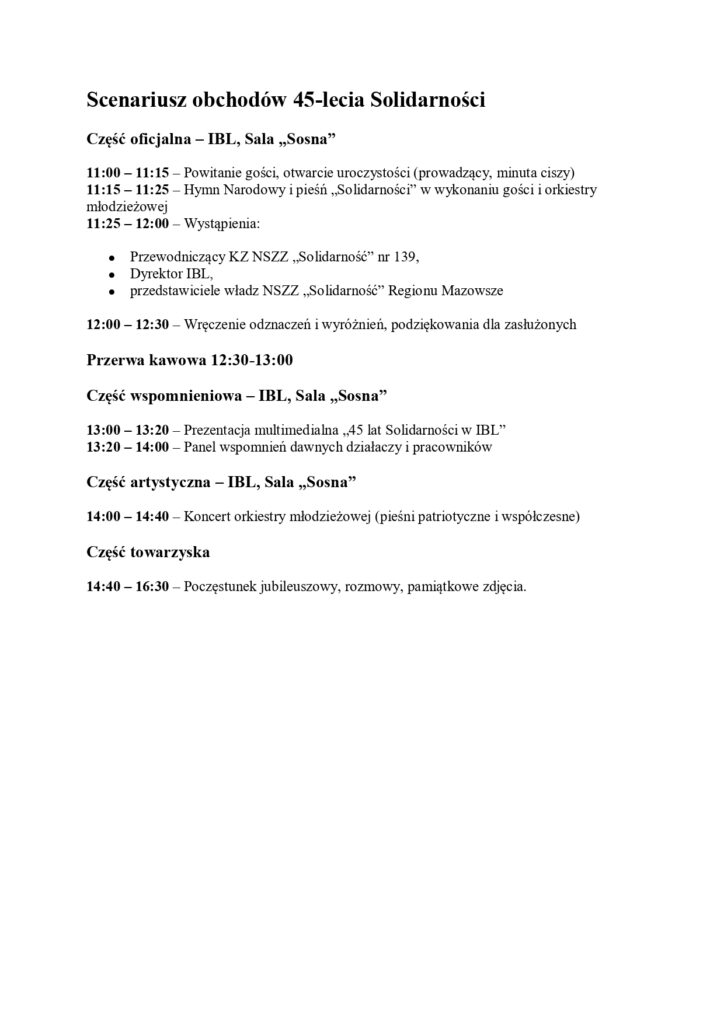 📜 Scenariusz obchodów 45-lecia NSZZ „Solidarność”